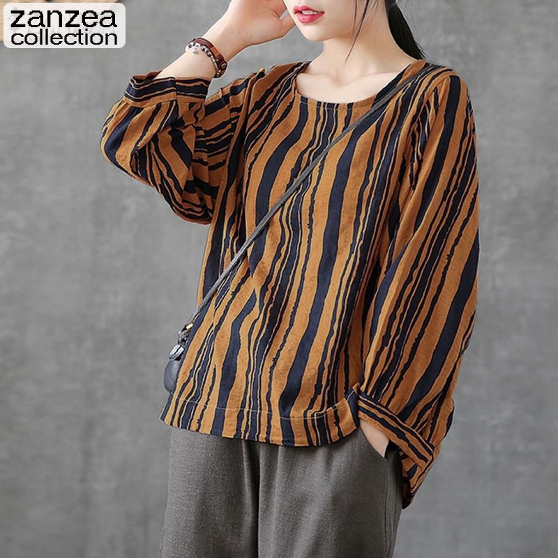 Jual Zanzea Blouse O Neck Lengan Panjang Casual Model Longgar Oversize Jumbo Motif Print Indonesia Shopee Indonesia